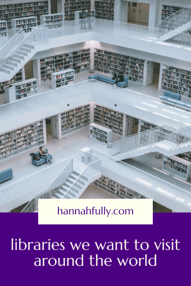 Some of these libraries look amazing! I’m not a library person just because I didn’t grow up going to them or using them, but I know many bookworms are grateful for them. πŸ™‚